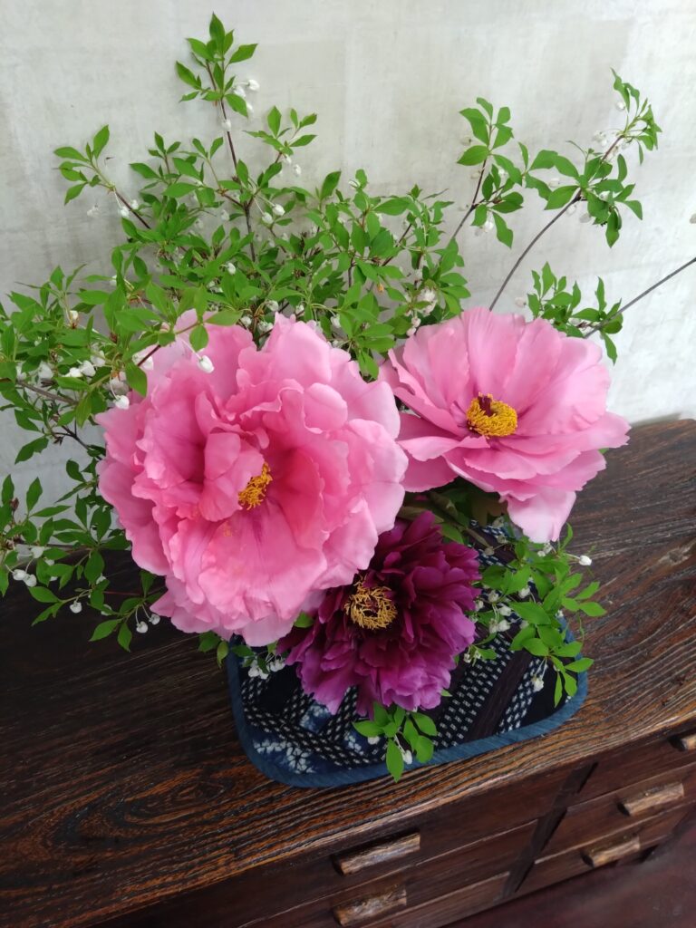 今年はピンクの牡丹が沢山花をつけました。少し拝借。